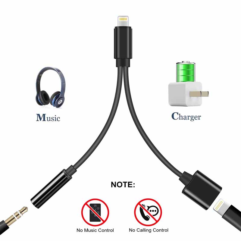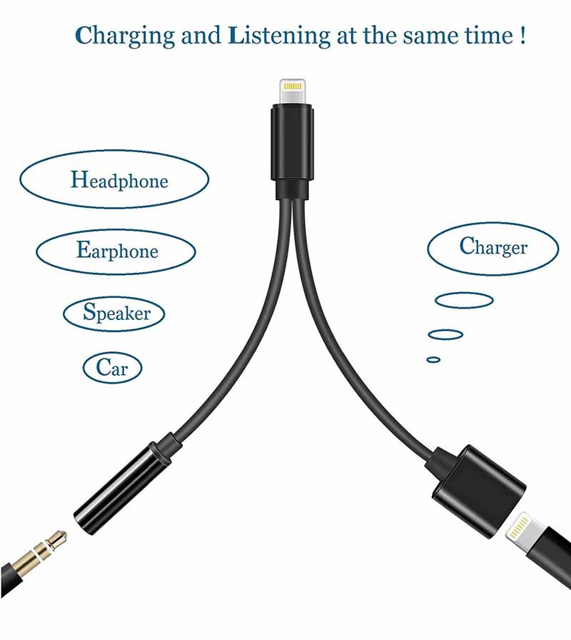 ◆ Multi-function: You will be able to charge your iphone and listen to music with a headphone or earphone at the same time ( Please be noted:Our 2 in 1 Lightning Adapter does not support music control and phone calls control )